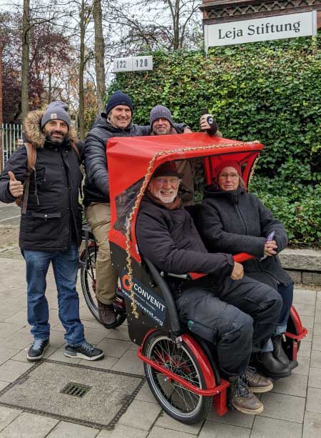 In Kooperation mit der Lèja Stiftung und der Saga GWG Stiftung präsentieren wir unser neues Projekt: die Nachbarschaftsrikscha St.Pauli auf dem Gelände der Lèja Stiftung in der Thadenstraße 120-122. Die Rikscha steht allen Jung und Junggebliebenden kostenfrei zur Verfügung, die Freude daran haben, mit mobil eingeschränkten Senioren aus der Nachbarschaft Ausflugsfahrten zu unternehmen.